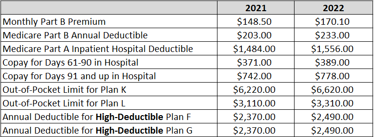 The Centers for Medicare & Medicaid Services (CMS) have also released 2022 deductibles and copays. Below is a quick reference to the Medicare deductible changes for 2022.
