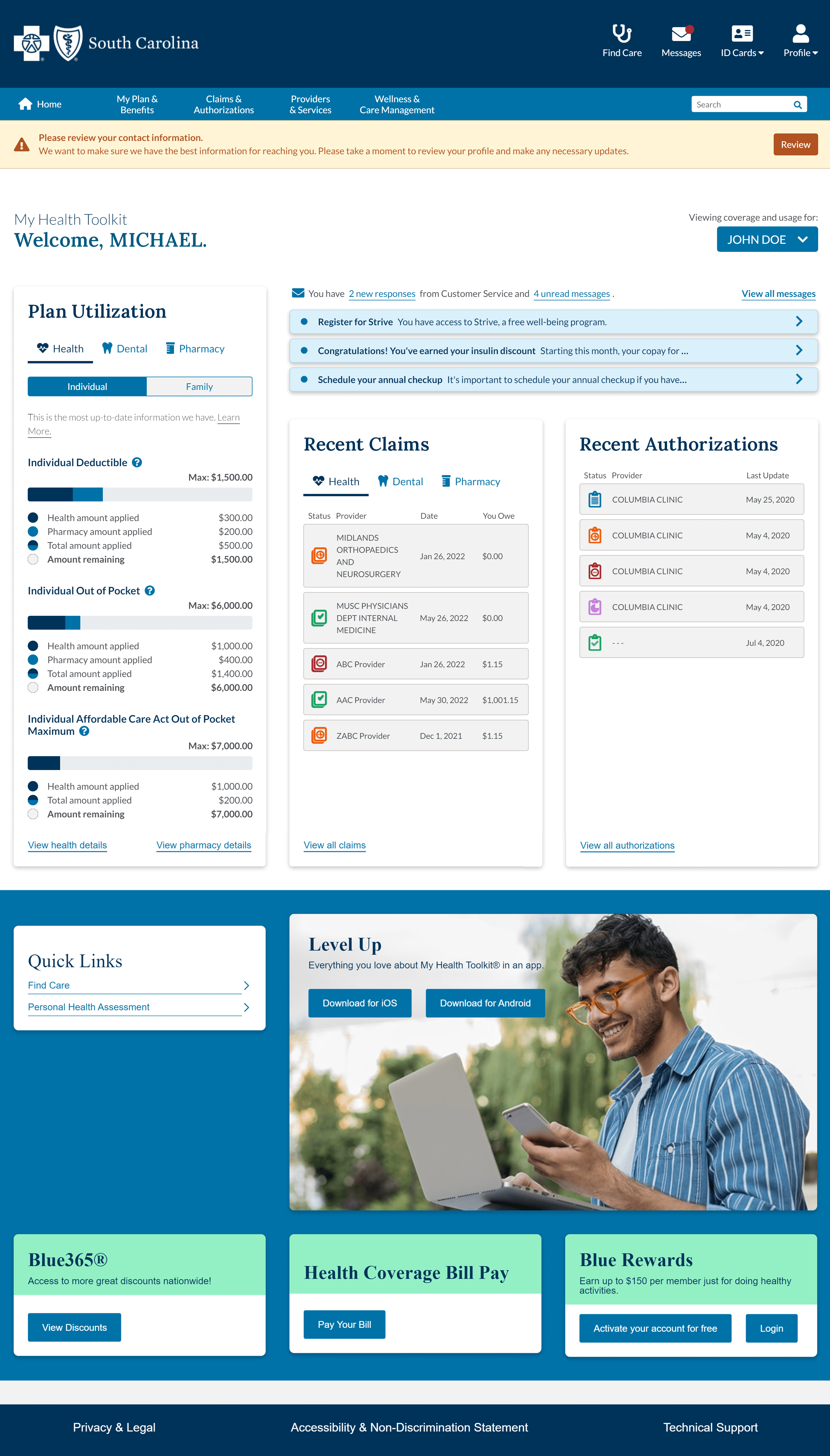 Members can download the My Health Toolkit mobile app or visit www.SouthCarolinaBlues.com to set up or log into their account. If you have questions, contact your sales representative.